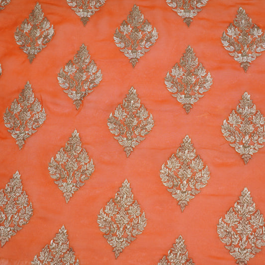 Reyah Peach Viscose Georgette Embroidered Fabric in Jaal Pattern