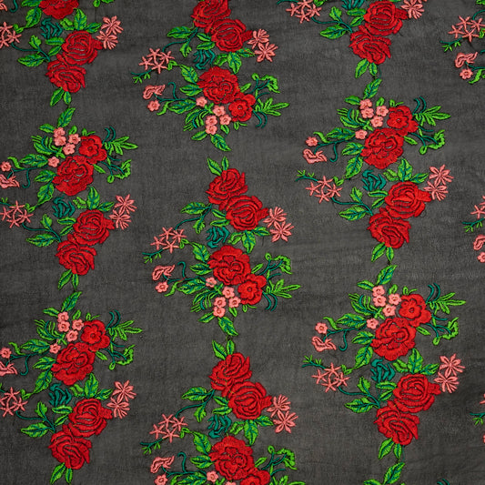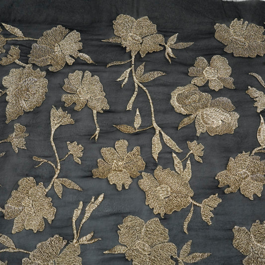 Zaira Black Viscose Georgette Embroidered Fabric in Jaal Pattern