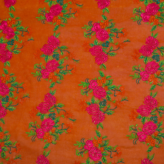Zaira Rust Viscose Georgette Embroidered Fabric in Jaal Pattern