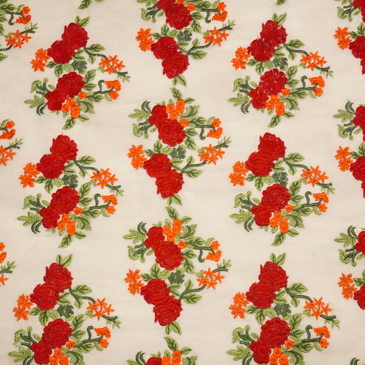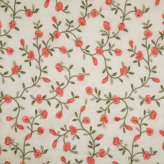 Zaira Cream Viscose Georgette Embroidered Fabric in Jaal Pattern