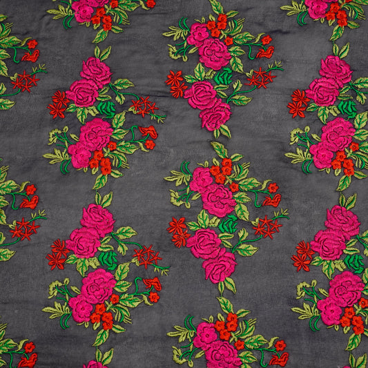Zaira Mouse Viscose Georgette Embroidered Fabric in Jaal Pattern
