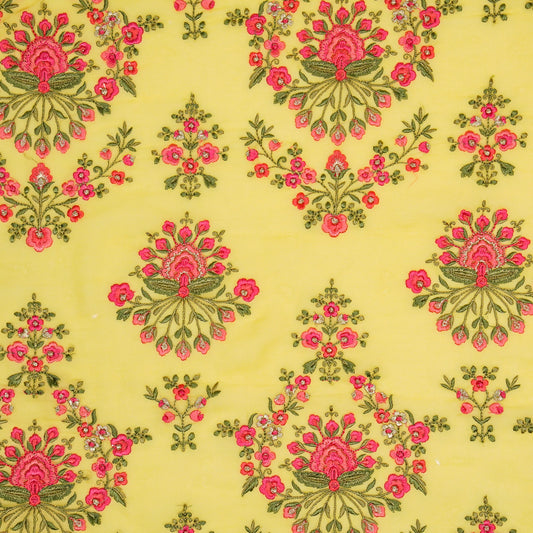 Tahani Floral Light Pink Viscose Georgette Embroidered Fabric in Jaal Pattern