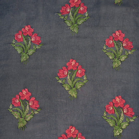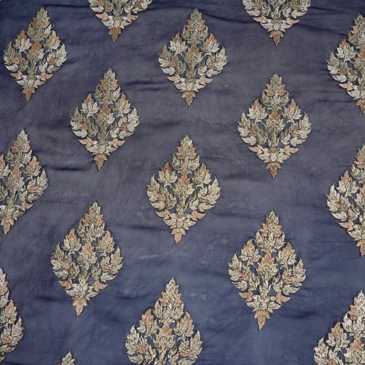 Nisa Navy Blue Viscose Georgette Embroidered Fabric in Buta Pattern