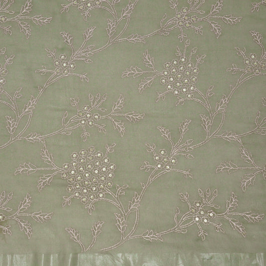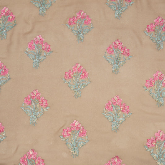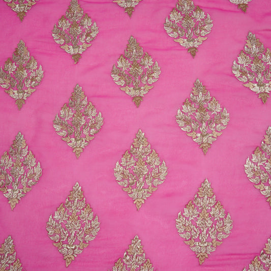 Nisa Onion Viscose Georgette Embroidered Fabric in Buta Pattern