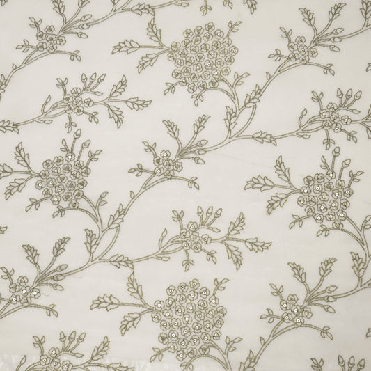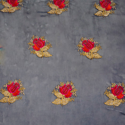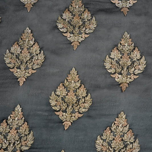 Shida Grey Viscose Georgette Embroidered Fabric in Jaal Pattern