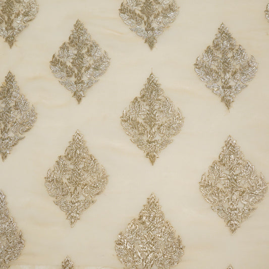 Nisa Beige Viscose Georgette Embroidered Fabric in Buta Pattern