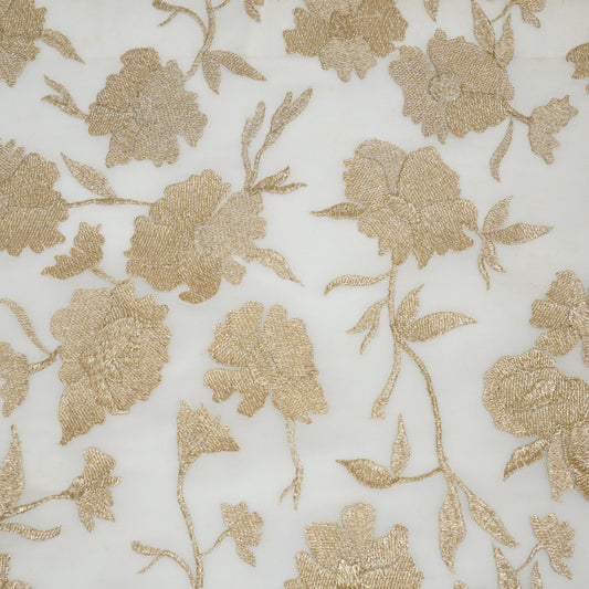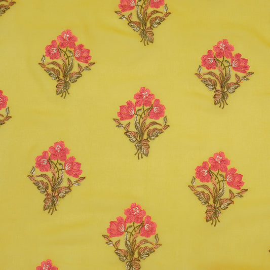 Nisa Gold Viscose Georgette Embroidered Fabric in Buta Pattern