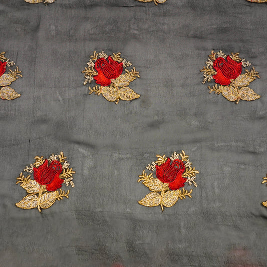 Inara Gajari Viscose Georgette Embroidered Fabric in Buta Pattern