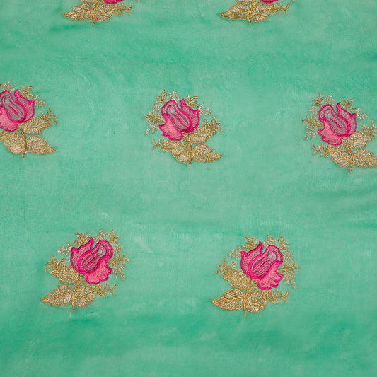 Inara Sea Green Viscose Georgette Embroidered Fabric in Buta Pattern