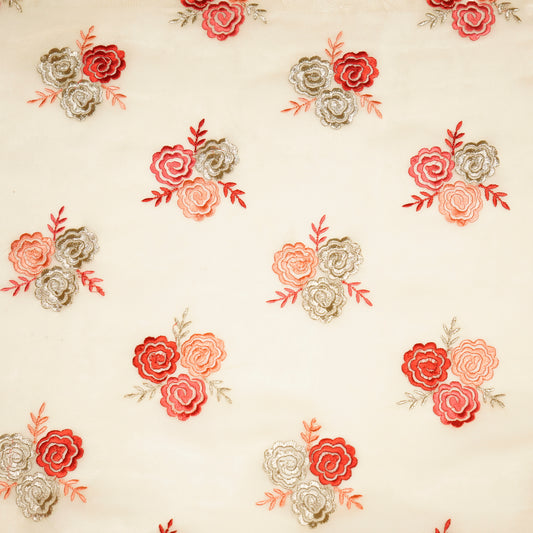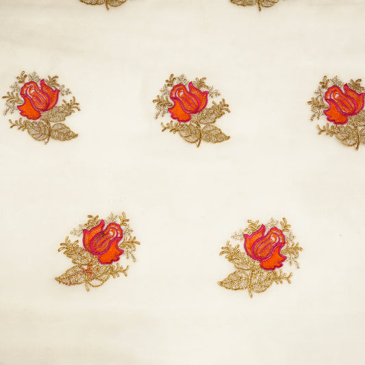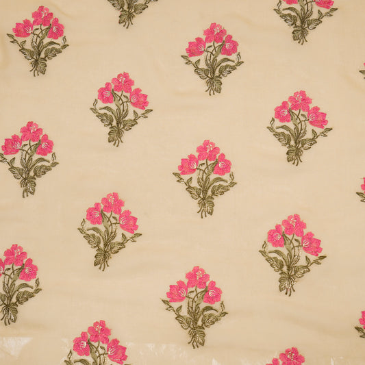 Rami Cream Viscose Georgette Embroidered Fabric in Buta Pattern
