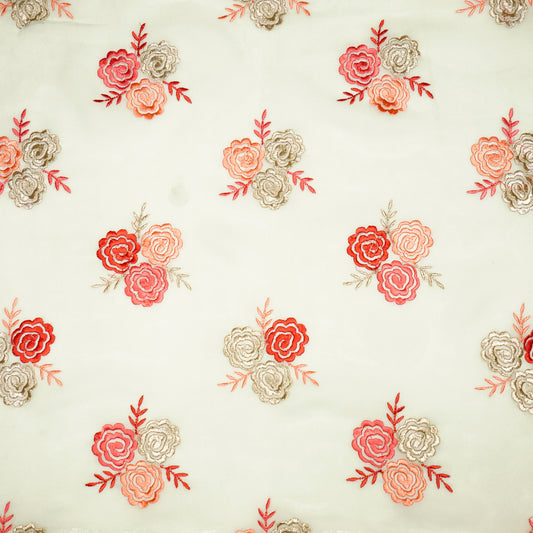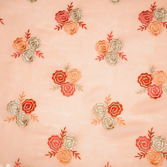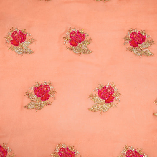Rami Deep Peach Viscose Georgette Embroidered Fabric in Buta Pattern