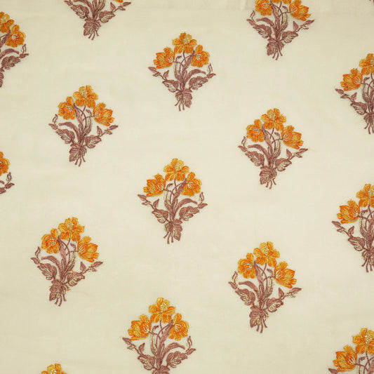 Nisa Cream Viscose Georgette Embroidered Fabric in Buta Pattern