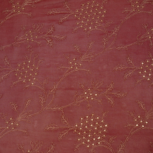 Shida Maroon Viscose Georgette Embroidered Fabric in Jaal Pattern