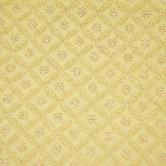 Eshal Lemon Viscose Georgette Embroidered Fabric in Jaal Pattern