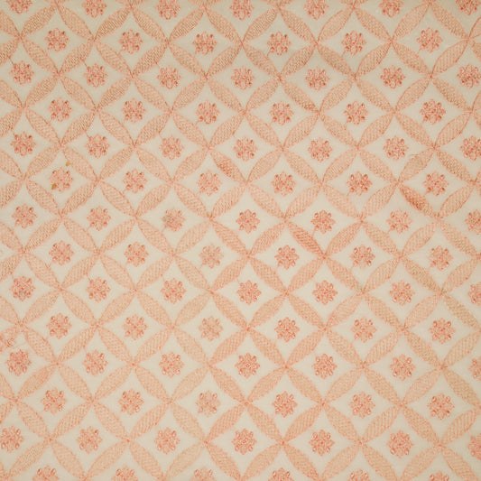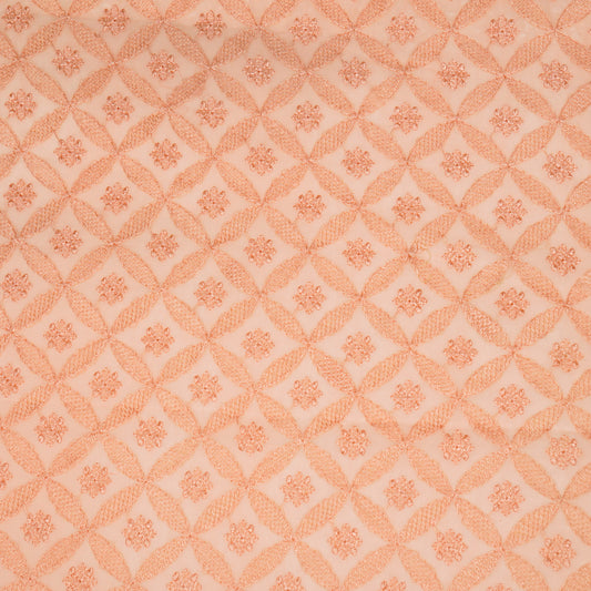 Eshal Peach Viscose Georgette Embroidered Fabric in Jaal Pattern