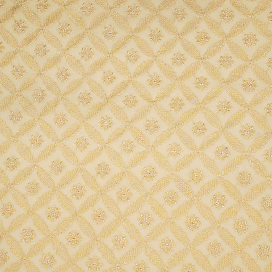 Eshal Cream Viscose Georgette Embroidered Fabric in Jaal Pattern