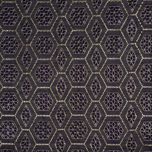 Fahm Sequins Navy Blue Chanderi Embroidered Fabric in Jaal Pattern