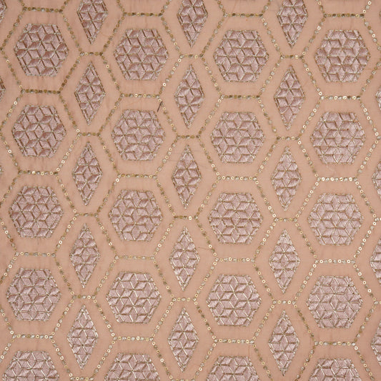 Fahm Sequins Blush Chanderi Embroidered Fabric in Jaal Pattern