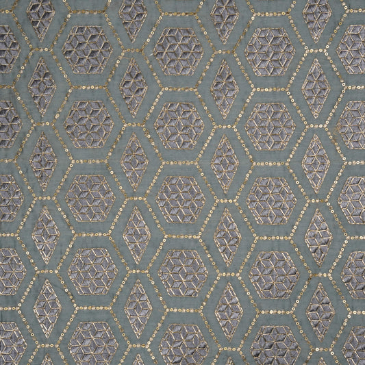 Fahm Sequins Bluish Grey Chanderi Embroidered Fabric in Jaal Pattern