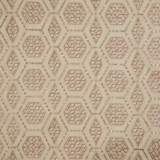 Fahm Sequins Cream Chanderi Embroidered Fabric in Jaal Pattern