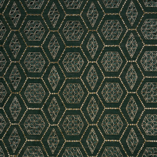 Fahm Sequins Bottle Green Chanderi Embroidered Fabric in Jaal Pattern
