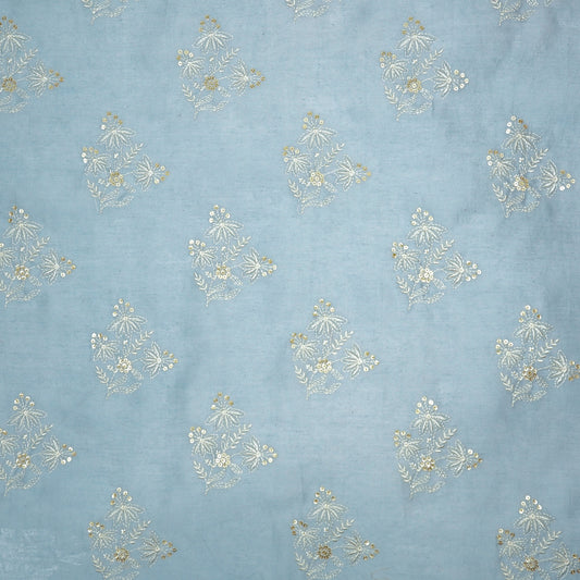 Hiba Steel Grey Chanderi Embroidered Fabric in Buta Pattern