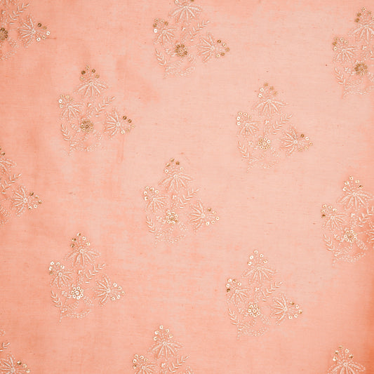 Hiba Light Peach Chanderi Embroidered Fabric in Buta Pattern