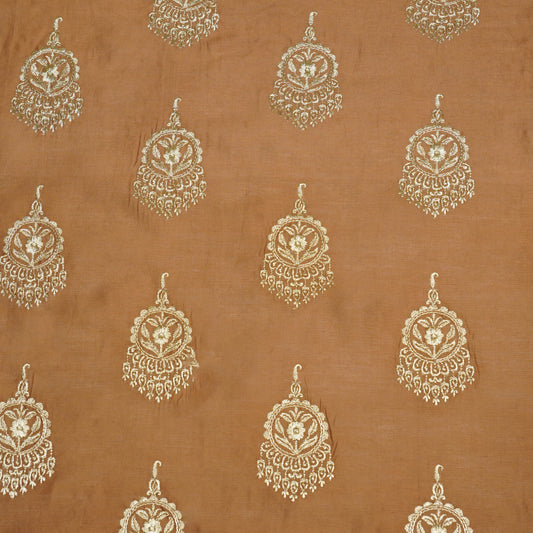 Ifra Chiku Chanderi Embroidered Fabric in Buta Pattern