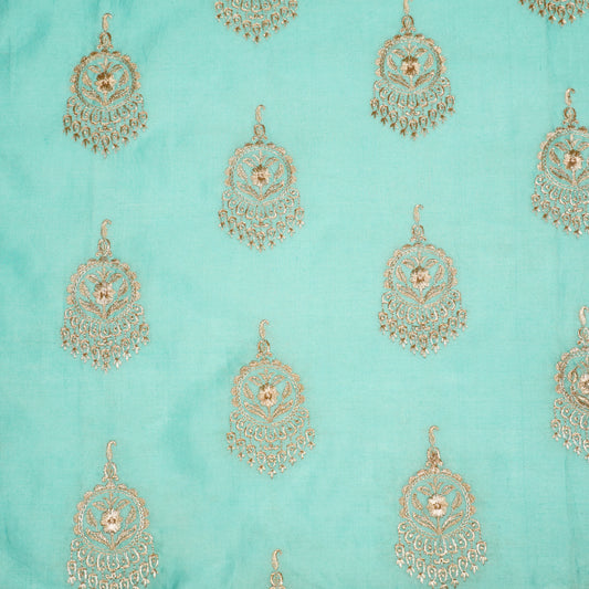 Ifra Aqua Chanderi Embroidered Fabric in Buta Pattern