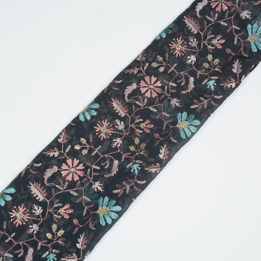 Iqra Charcoal Viscose Georgette Embroidered Fabric in Jaal Pattern