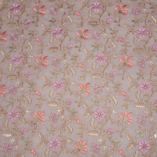 Iqra Onion Viscose Georgette Embroidered Fabric in Jaal Pattern