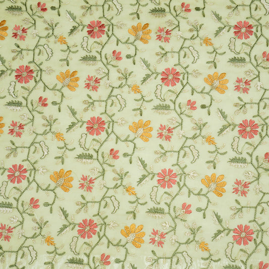 Iqra Sea Green Viscose Georgette Embroidered Fabric in Jaal Pattern