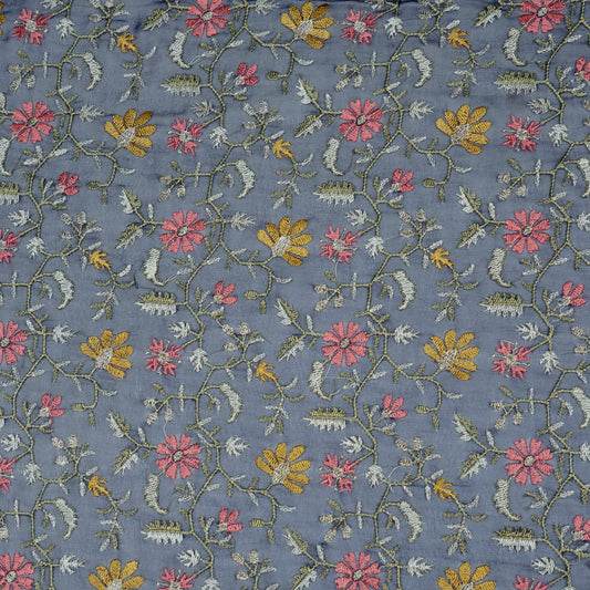 Iqra Mouse Viscose Georgette Embroidered Fabric in Jaal Pattern