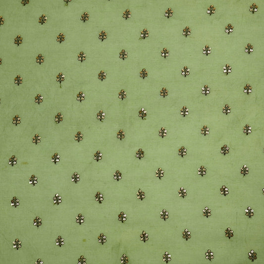 Kiraz Sequin Sea Green Chanderi Embroidered Fabric in Buti Pattern