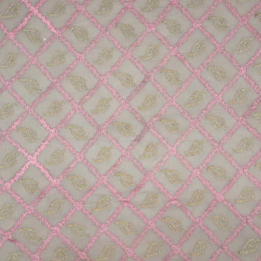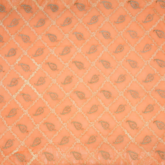 Maliha Peach Viscose Georgette Embroidered Fabric in Jaal Pattern