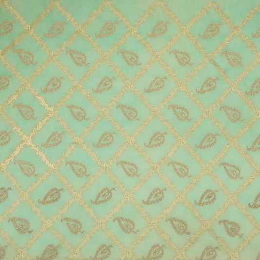 Maliha Light Teal Viscose Georgette Embroidered Fabric in Jaal Pattern