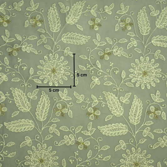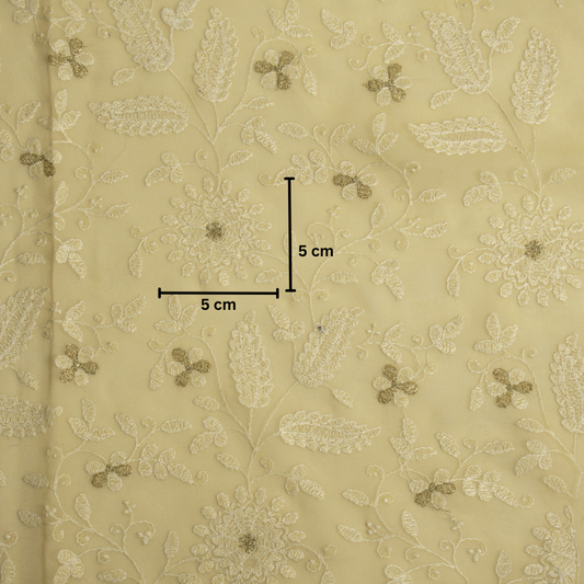 Muminah Cream Viscose Georgette Embroidered Fabric in Jaal Pattern