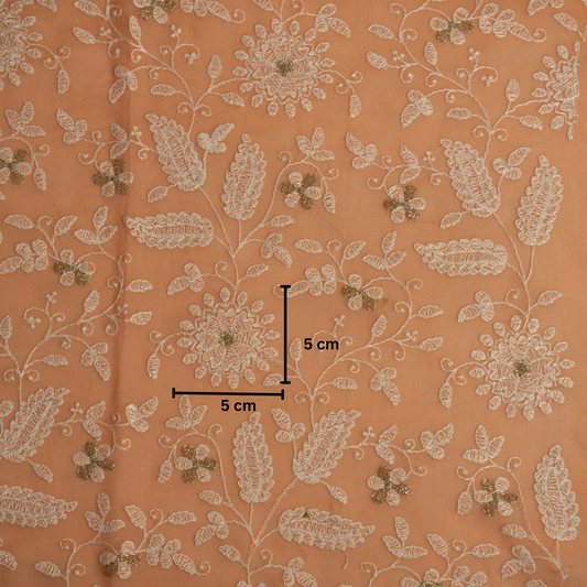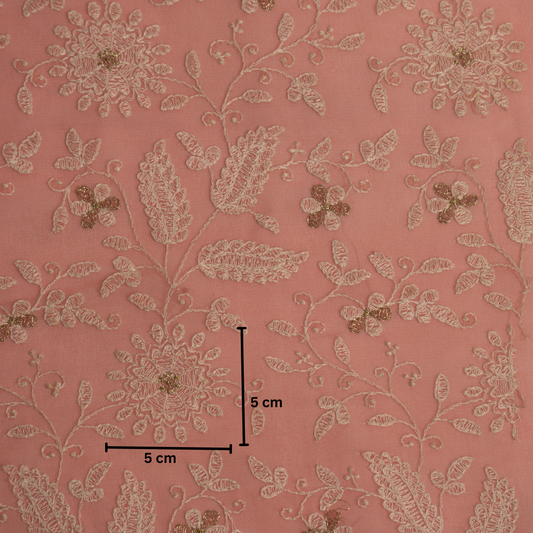 Muminah Deep Peach Viscose Georgette Embroidered Fabric in Jaal Pattern