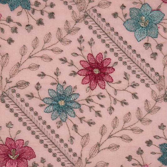 Pariza Blush Cotton Embroidered Fabric in Jaal Pattern