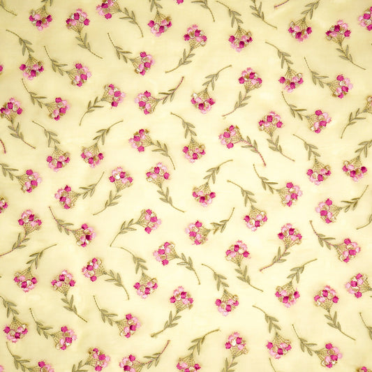 Rimsha Lemon Viscose Organza Embroidered Fabric in Jaal Pattern