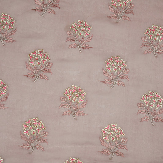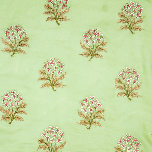 Ruhi Onion Viscose Georgette Embroidered Fabric in Buta Pattern