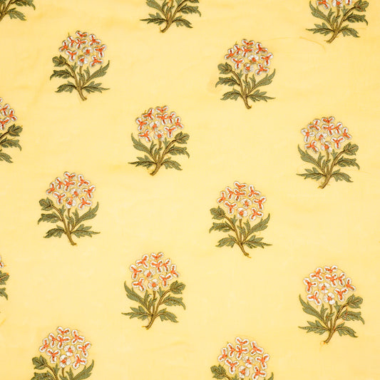 Ruhi Lemon Viscose Georgette Embroidered Fabric in Buta Pattern