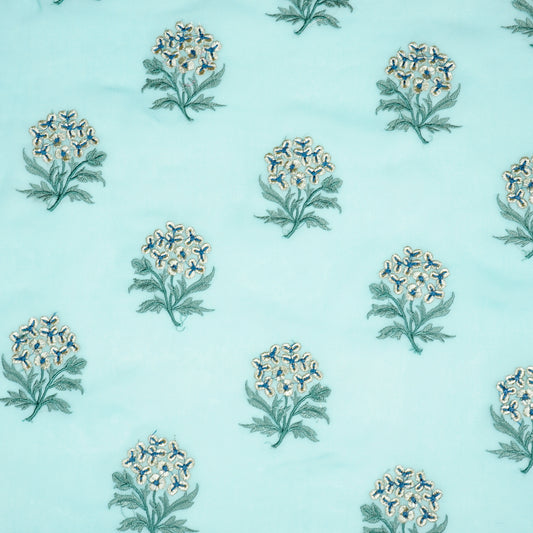 Ruhi Aqua Viscose Georgette Embroidered Fabric in Buta Pattern