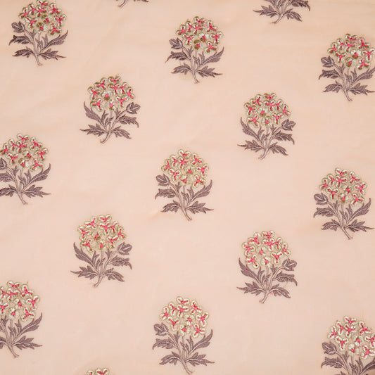 Ruhi Peach Viscose Georgette Embroidered Fabric in Buta Pattern