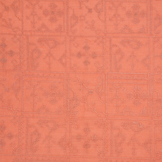 Seda Peach Chanderi Embroidered Fabric in Jaal Pattern
