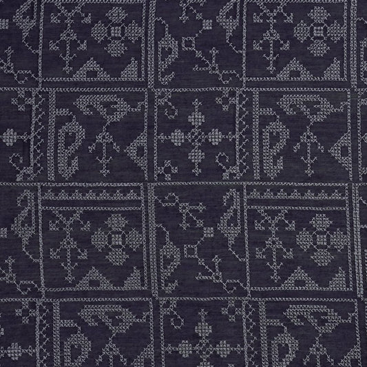 Seda Navy Blue Chanderi Embroidered Fabric in Jaal Pattern