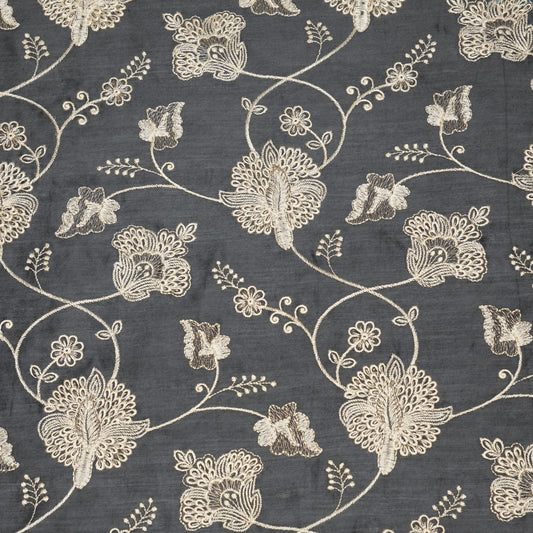 Usma Charcoal Viscose Raw Silk Embroidered Fabric in Jaal Pattern