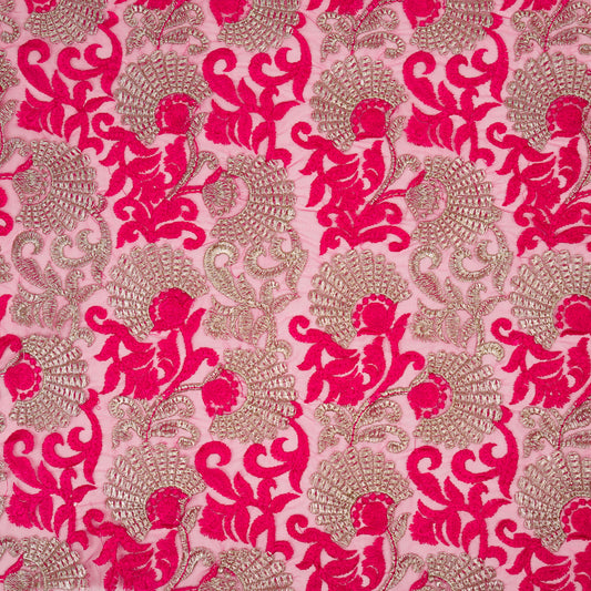 Manjari Fuxia Viscose Georgette Embroidered Fabric in Jaal Pattern