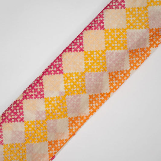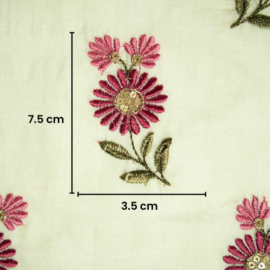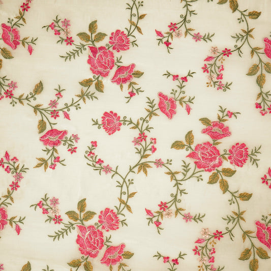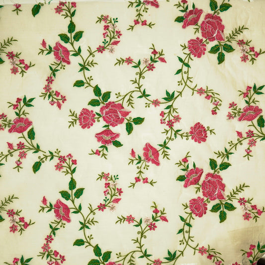 Isra Ivory/Fuxia Chanderi Embroidered Fabric in Jaal Pattern