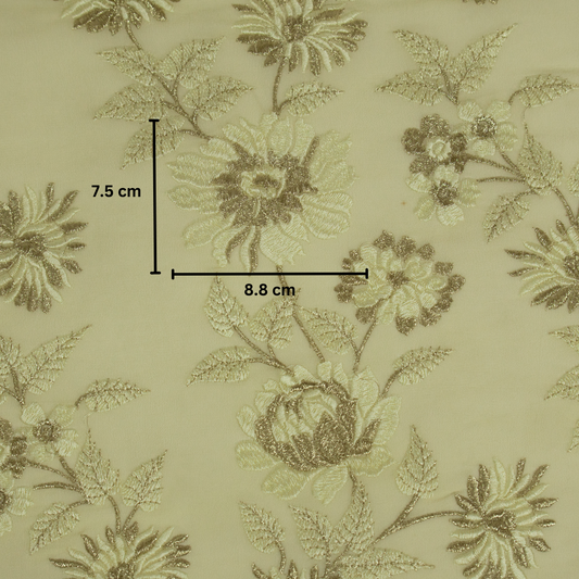 Rutui Ivory Viscose Georgette Embroidered Fabric in Jaal Pattern